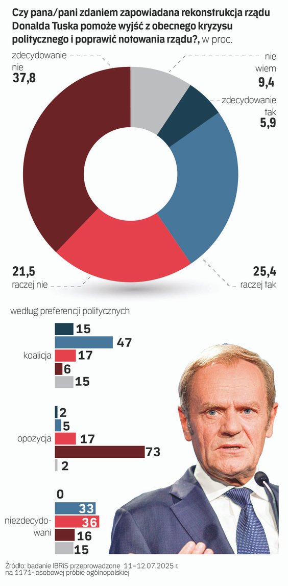 Z rozmów z ważnymi politykami PO i innych ugrupowań koalicyjnych wynika bowiem, że z tym scenariuszem zaczyna się liczyć także sam Donald Tusk. Dlatego obecna rekonstrukcja bywa w rządowych kręgach nazywana „ostatnią rekonstrukcją Tuska”. Kolejna w 2026 r. miałaby obejmować również premiera i dawać nowy impuls, odświeżenie wizerunkowe na wybory do Sejmu.