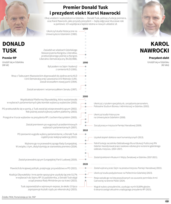Choć rząd Donalda Tuska spierał się z odchodzącym prezydentem Andrzejem Dudą niemal we wszystkim, były sprawy, w których oba ośrodki współpracowały i wymieniały się informacjami, choć nie zawsze się tym publicznie chwaliły. Już niebawem do Pałacu Prezydenckiego wprowadzi się jednak Karol Nawrocki. W przestrzeni medialnej znaleźć można komentarze ekspertów, które sugerują, że obecną koalicję rządzącą z Nawrockim dzieli jeszcze więcej niż z Dudą. Zdaniem części specjalistów podziały polityczne na polskiej scenie politycznej mogą utrudniać współpracę prezydenta z premierem. Mimo że zarówno Donald Tusk, jak i Karol Nawrocki deklarują, że gotowi są współpracować w sprawach kluczowych dla Polski.