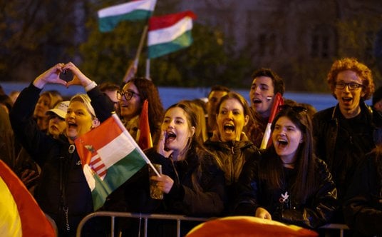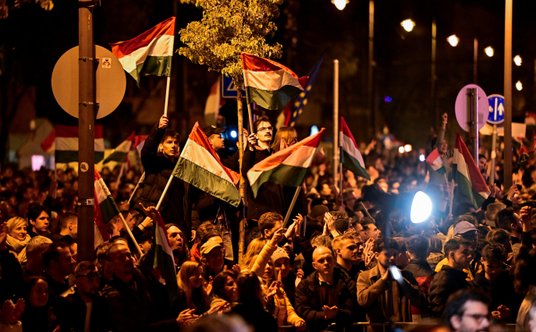 Wyborcy partii Pétera Magyara świętuja na ulicach Budapesztu