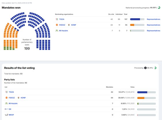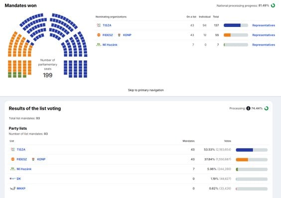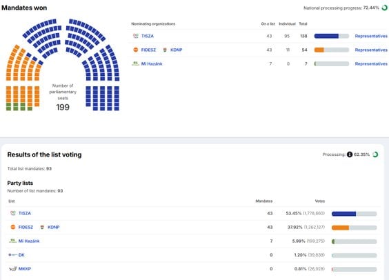 - Tisza 132 mandaty