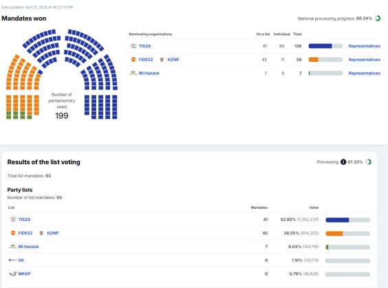 „Rodacy, przeżywamy ostatnie godziny władzy Orbána: pożegnajmy ich (Fidesz - red.) spokojnie i z godnością, a jutro zabierzmy się do ponownego zjednoczenia narodu” - napisał lider Tiszy w serwisie X. Jednocześnie zaapelował do tych, którzy jeszcze nie oddali głosu w wyborach, by przed godziną 19 zrobili to, bo „naprawdę liczy się każdy głos”. „ I przekonaj do tego swoich krewnych, znajomych i przyjaciół! Boże, błogosław Węgry!” - kończy swój wpis lider węgierskiej opozycji.