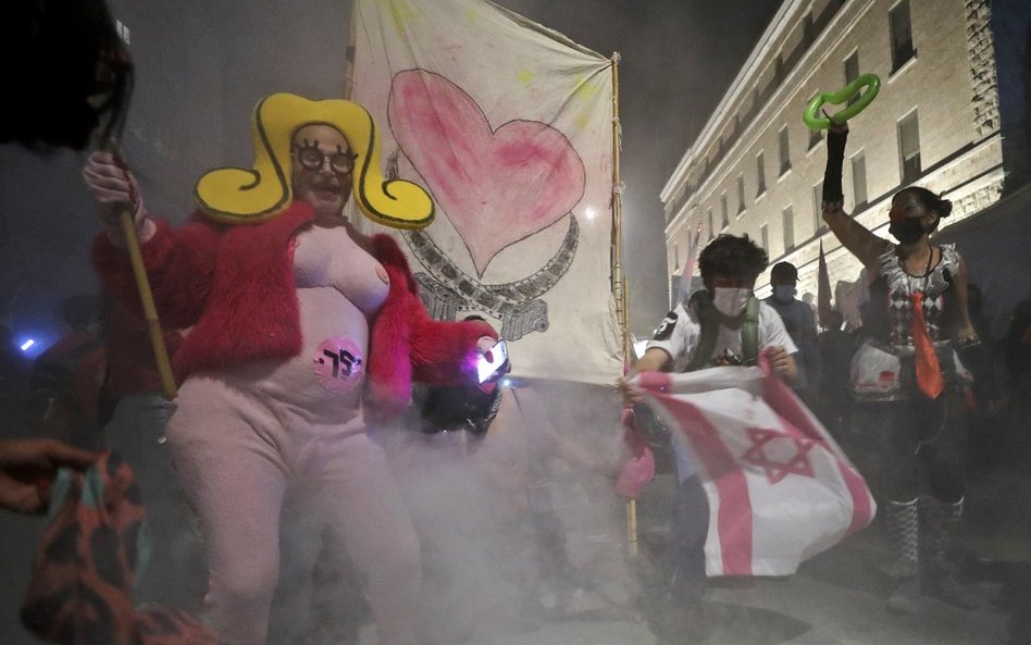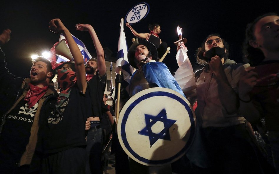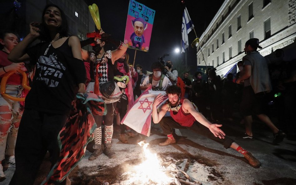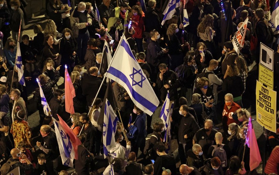 W sobotę tłum był większy niż na wielu poprzednich protestach przeciwko Netanjahu, które zorganizowano w zeszłym roku - izraelskie media podały, że liczył około 20 tys. osób.