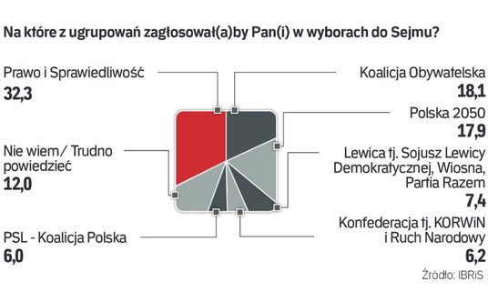 Według najnowszego sondażu IBRiS przeprowadzonego na zlecenie „Rzeczpospolitej" PiS utrzymuje pozycję lidera na poziomie 32 proc., co nie daje mu szans na samodzielny rząd. Ale opozycja miałaby duży kłopot z utworzeniem większości po wyborach. Należałoby bowiem stworzyć koalicję wszystkich czterech sił opozycyjnych. Poza tym dwa największe ugrupowania – PO i Polska 2050 – mają takie samo poparcie, podobny program i miejsce na scenie politycznej. Jedno z nich musi więc zrobić wszystko, by przed wyborami zapewnić sobie pozycję dominującą.
