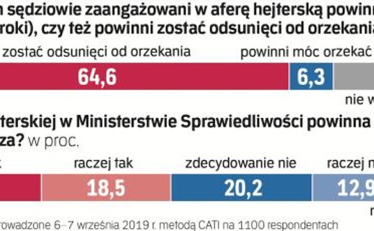 24 proc. wyborców PiS nie ma sprecyzowanej opinii w tej kwestii, 59 proc. chce odsunięcia sędziów z MS od zawodu, a jedynie 17 proc. nie widzi powodu do ich wykluczania.