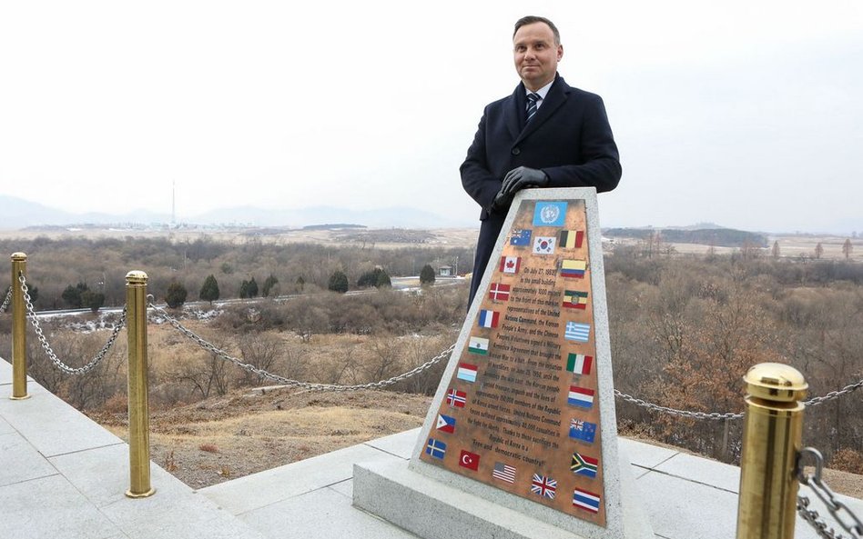 - Jesteśmy jeszcze cały czas na terenie Korei Południowej, ale w strefie zdemilitaryzowanej, bardzo blisko linii demarkacyjnej dzielącej dwa państwa koreańskie, które nigdy nie zawarły pokoju po wojnie koreańskiej; jest rozejm, jest zawieszenie broni, ale traktatu pokojowego nigdy nie zawarto i stąd są tutaj obecne cały czas siły ONZ, w tym siły polskie – mówił Duda.