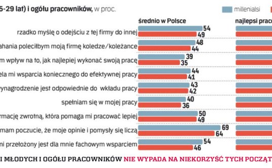 – Dla młodych ludzi hierarchiczność w firmach jest przeżytkiem, ale oczekują oni mądrego zarządzania i mądrego przywództwa, umiejętności doceniania ludzi i umożliwiania im rozwoju – twierdzi ekspertka Aon. Zwraca uwagę, że chociaż milenialsi w niektórych obszarach (m.in. benefitów) oceniają swoich pracodawców nieco gorzej niż starsi koledzy, to wcale nie rozglądają się częściej za pracą niż oni.