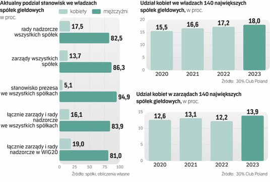 W Polsce szykują się duże zmiany w związku z dyrektywą unijną „Women on boards”. Duże spółki giełdowe do końca czerwca 2026 r. muszą zmienić swoje władze tak, by przynajmniej 40 proc. członków rady nadzorczej było z niedoreprezentowanej płci. Ewentualnie, w zależności od ostatecznego rozwiązania legislacyjnego, musi to być 33 proc. członków zarządów i rad nadzorczych. Od tych poziomów Polskę dzieli przepaść. – Dziś pierwsze z tych kryteriów spełnia tylko 16, a drugie 24 spółek spośród 140 największych firm notowanych na polskiej giełdzie – mówi Aleksandra Włodarczyk, współzałożycielka 30% Club Poland.