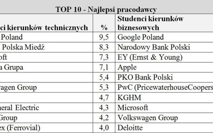 Młodzi Polacy coraz częściej jako wymarzonego przyszłego pracodawcę wskazują krajowe firmy- wynika z tegorocznej edycji badania trendence Graduate Barometer 2015 , które objęło prawie 16 tys. studentów polskich uczelni z kierunków biznesowych oraz inżynieryjnych i IT. Wprawdzie ścisłą czołówkę badania tworzą ci sami (głównie międzynarodowi) pracodawcy, co przed rokiem, ale nastąpiło wśród nich trochę przetasowań. I to na korzyść krajowych firm.