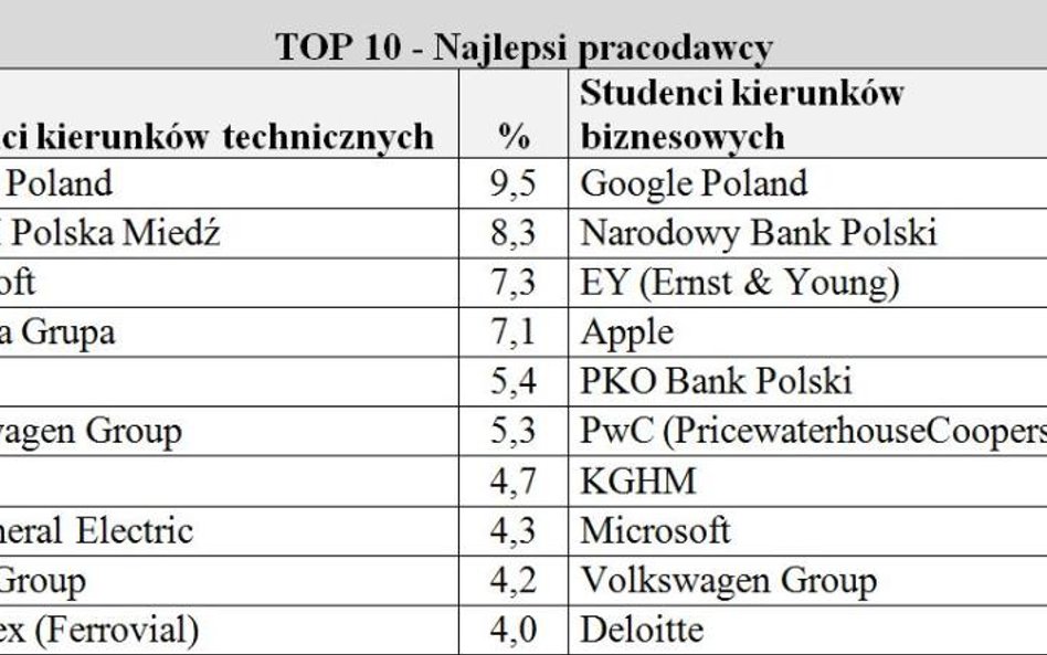 NBP, PKO BP oraz KGHM – uplasowały się w pierwszej piątce miejsc pracy preferowanych przez młodych Polaków. Mniej już ich kusi wielka czwórka audytorsko-doradcza.