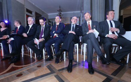 Kancelaria Pietrzak Sidor & Wspólnicy oraz kancelaria Raczkowski Paruch zostali liderami w dziedzinie prawo karne dla biznesu. Od lewej: Marcin Klimczak z PWC, Mikołaj Pietrzak z Pietrzak Sidor & Wspólnicy, Dominika Stępińska-Duch oraz Sławomir Paruch z Raczkowski Paruch, oraz Bogusław Chrabota redaktor naczelny "Rzeczpospolitej"