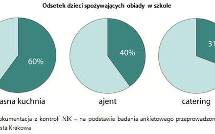 W skontrolowanych przez NIK szkołach, w roku szkolnym 2015/2016, odsetek uczniów z nieprawidłową masą ciała - z nadwagą i otyłością oraz z niedowagą - wyniósł aż 22 proc., czyli dotyczył co piątego dziecka. W ciągu czterech lat (od 2012 do 2016 roku) wzrósł on o ponad pięć punktów procentowych. Chociaż w szkołach prowadzone były ogólnopolskie programy promujące zdrowe żywienie i działania edukacyjne kształtujące prawidłowe nawyki żywieniowe wśród uczniów, nie zatrzymały one tej niebezpiecznej tendencji. Zdaniem NIK skuteczność programów osłabiała m.in. dostępność niezdrowych produktów w części sklepików szkolnych, czy też podawanie uczniom w szkole obiadów niejednokrotnie przekraczających normy żywienia dla dzieci i młodzieży (ze zbyt wysoką zawartością białka, tłuszczów, węglowodanów oraz nadmierną ilością sodu).