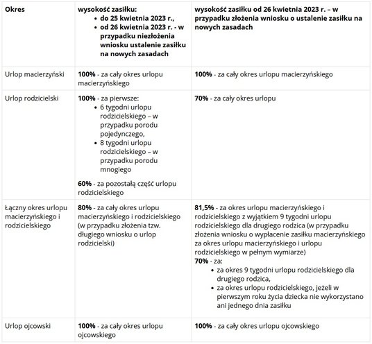 Wraz z wprowadzeniem nowych przepisów zasiłek macierzyński wzrośnie z 80 do 81,5 proc. podstawy wymiaru. Matka może otrzymać ten zasiłek w takiej samej wysokości przez cały okres jego pobierania. Ale musi się pospieszyć. Jeśli nie złoży wniosku o nowy, dłuższy zasiłek macierzyński do 21 dni po porodzie albo przyjęciu dziecka na wychowanie, świadczenie będzie wynosił 100 proc. podstawy wymiaru za okres urlopu macierzyńskiego i 70 proc. podstawy za okres urlopu rodzicielskiego.
