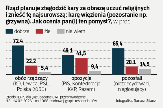 Proponowane w projekcie rozwiązanie – według resortu – ma też zapobiec nadmiernej represji i ograniczać ryzyko tymczasowego aresztowania. Mniej entuzjastycznie pomysł ten ocenia Kościół Katolicki. Polscy biskupi chcą zachowania w kodeksie karnym kary pozbawienia wolności za obrazę uczuć religijnych, a proponowane zniesienie tej sankcji to według Kościoła absurdalne rozwiązanie rujnujące system prawnokarnej ochrony wolności religijnej. Z pomysłem resortu sprawiedliwości nie zgadza się też prokurator krajowy, który wskazuje na potrzebę zachowania obecnego zakresu kar z uwagi na możliwe prowokacje w ramach wojny hybrydowej.