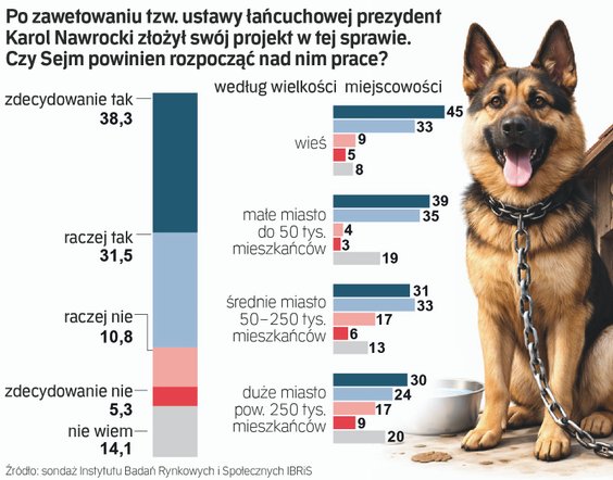 Zawetowana przez prezydenta tzw. ustawa łańcuchowa miała wprowadzić dokładne normy dotyczące wielkości kojców dla zwierząt. Pomysł spotkał się jednak z oporem Karola Nawrockiego, który przedstawił własną, w jego mniemaniu bardziej sprawiedliwą społecznie propozycję rozwiązań. A więc projekt przepisów, który – jego zdaniem – nie tylko spuści psy z łańcucha, ale na ich właścicieli nie nałoży łańcucha restrykcji (czyli „nierealnych do spełnienia obowiązków budowania kilkudziesięciometrowych kojców”).