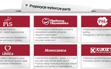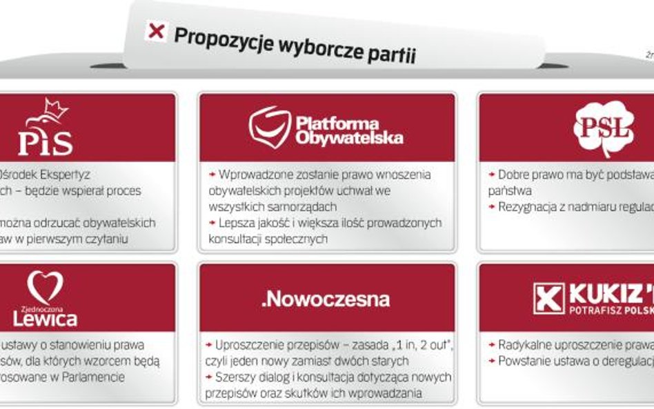 Słaba jakość stanowionego prawa i nadmiar przepisów regulujących życie w każdej dziedzinie – to od lat największy problem naszej legislacji. Ustawy, które jeszcze przed wejściem w życie wymagają nowelizacji, nie należą do rzadkości. Wiedzą o tym partie polityczne i w swoich programach wyborczych piszą, jak chcą rozwiązać ten problem. Jedni mówią o rezygnacji z nadmiaru regulacji, inni chcą uchwalać nowe ustawy, które mają w przyszłości regulację ograniczyć.