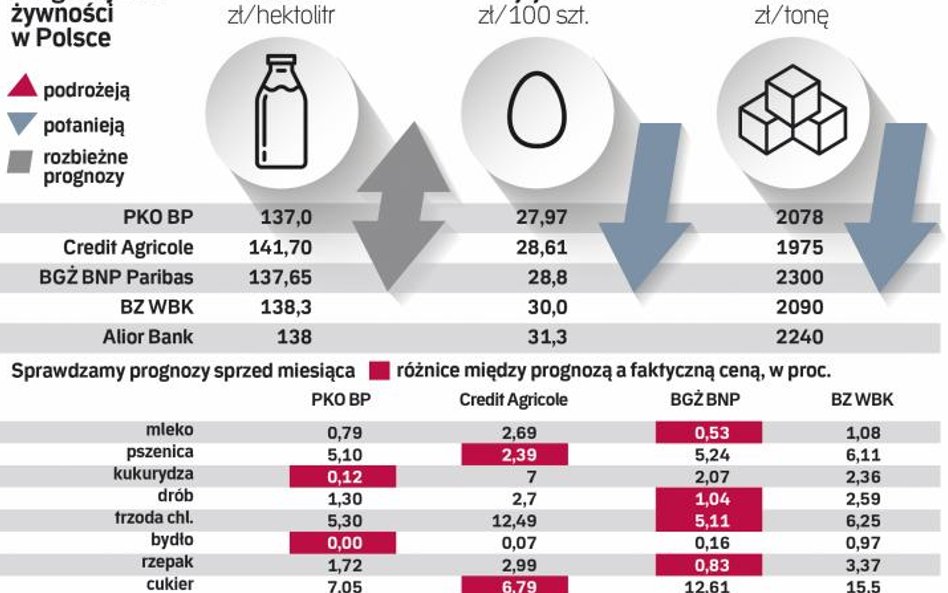 O ile w pierwszej edycji przygotowywanego przez nas rankingu cen surowców rolnych zapowiadaliśmy więcej podwyżek, o tyle dziś czytelnicy mają więcej powodów do optymizmu. Zaproszeni do udziału w rankingu analitycy rynków rolnych z banku Credit Agricole, PKO BP, BGŻ BNP Paribas, BZ WBK oraz Alior Banku są zgodni, że już w perspektywie miesiąca znacząco spadną ceny wielu produktów rolnych: np. jaj, nawet o 17 proc.