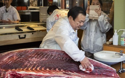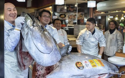 Sobotni zakup nastąpił na pierwszej w tym roku aukcji giełdy Toyosu po zamknięciu w ubiegłym roku słynnej Tsukiji dla zapewnienia tymczasowego parkingu przez letnia olimpiadą w Tokio w 2020 r.