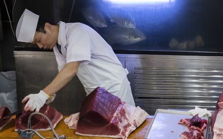Po obecnej aukcji tuńczyka przetransportowano do jednego z budynków Sushizanmai znajdującego się na terenie dawnej giełdy.