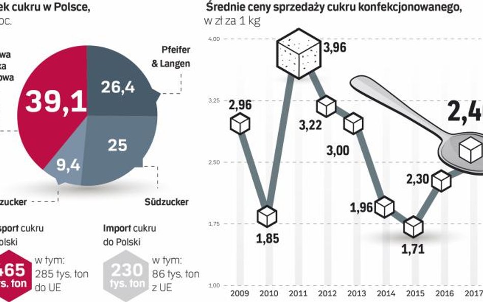 W naszym kraju działa czterech producentów cukru. Tylko Krajowa Spółka Cukrowa (Polski Cukier) ma kapitał polski, pozostałe trzy mają centrale w Niemczech: Nordzucker, Pfeifer & Langen i właśnie Südzucker. Polski Cukier ma największe udziały w rynku. Nasz kraj jest trzecim producentem tego surowca w Unii, za Francją i Niemcami, i jego znaczącym eksporterem.