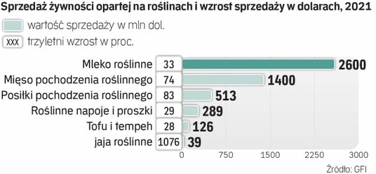 Bliższe spojrzenie na paragony może nieco zaskakiwać, bo blisko trzy czwarte rynku pod względem wartości stanowią zamienniki nie samego mięsa, a wędlin. Zamienniki mięs w daniach gotowych zajmują jedną piątą rynku, pozostałe zaś ok. 7 proc. – to zamienniki mięsnych pasztetów. Cały rynek roślinnych zamienników produktów zwierzęcych (czyli także jogurty, napoje etc.) GfK Polonia wycenia nawet na 1,5 mld zł. Firma wskazała, że sprzedaż zamienników mięsa w 2021 r. się podwoiła, a roślinnego nabiału – wzrosła o 40 proc.