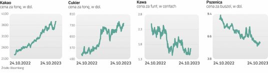 Kakao jest w tym roku najmocniej drożejącym surowcem notowanym na giełdzie nowojorskiej. Jego cena przebiła szczyt z 2011 r., czyli z okresu, w którym wojna domowa na Wybrzeżu Kości Słoniowej poważnie zakłóciła dostawy. Za tegoroczne problemy z podażą kakao jest obwiniane przede wszystkim zjawisko klimatyczne El Nino. W jego wyniku Afrykę Zachodnią nawiedziły deszcze w okresie normalnie uznawanym za porę suchą. To przyczyniło się do opóźnienia zbiorów i zaatakowania plantacji kakaowców przez choroby. Na problemy z podażą nałożył się wysoki popyt, nakręcany w coraz większym stopniu przez Chiny. Międzynarodowa Organizacja Kakao (ICCO) szacuje, że globalna produkcja tego surowca w obecnym sezonie (2022–2023) wzrosła o 2,4 proc., do 4,94 mln ton, a mimo to na rynku jest deficyt wynoszący 100 tys. ton.