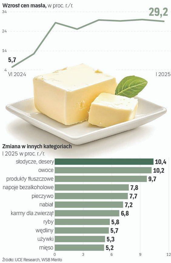 – To znaczący wzrost, który odzwierciedla globalne i lokalne napięcia inflacyjne – uzupełnia Julita Pryzmont z agencji Hiper-Com Poland. – Główne przyczyny to rosnące koszty surowców, energii oraz logistyki. Konsumenci powinni przygotować się na to, że jeśli sytuacja rynkowa się nie ustabilizuje, ceny mogą nadal rosnąć, choć dynamika wzrostu może ulec spowolnieniu. Wpływ na przyszłe ceny będą miały także globalne trendy w produkcji mleka, polityka rolna, kursy walut oraz ewentualne zmiany w strategiach handlowych sieci detalicznych. Sytuacja na rynku masła jest więc dynamiczna – tłumaczy.