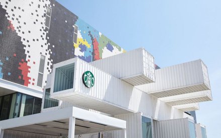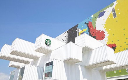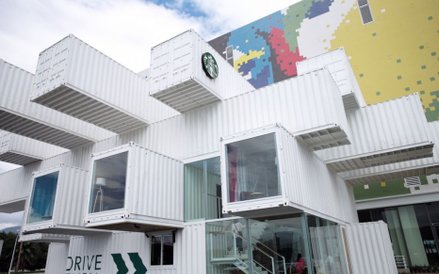 Teraz Starbucks poszedł o krok dalej – otworzył pierwszą kawiarnię skonstruowaną z używanych kontenerów. Nietypowy lokal powstał w mieście portowym w Tajwanie, naprzeciw Oceanu Spokojnego. Jego projektantem jest znany japoński architekt Kengo Kuma. Budynek zbudowany z 29 kontenerów zdaje się być połączeniem nowoczesności ze starożytną azjatycką architekturą: kontenery nachodzą na siebie jeden na drugi, przypominając buddyjską wieżę sakralną, pagodę. Taka budowa, jak i szerokie okna, mają umożliwić jak największy dopływ światła słonecznego, a co za tym idzie zaoszczędzenie prądu elektrycznego.