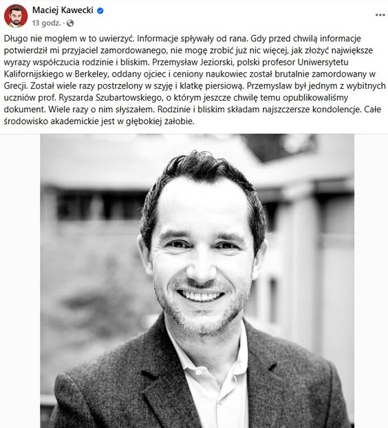 Grecki portal iEidiseis i telewizja TOC podały, że ofiarą jest Przemysław Jeziorski, profesor marketingu i finansów z Uniwersytetu Kalifornijskiego w Berkeley. Mężczyzna został postrzelony, gdy zbliżał się do domu, w którym mieszkały jego dzieci. Polak „przyjechał do Grecji, aby wziąć udział w rozprawie dotyczącej opieki nad dziećmi, które miał z Greczynką” - podano.