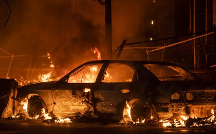 W mieście trwają starcia protestujących z policją, płoną samochody i budynki. Funkcjonariusze użyli gazu łzawiącego.
