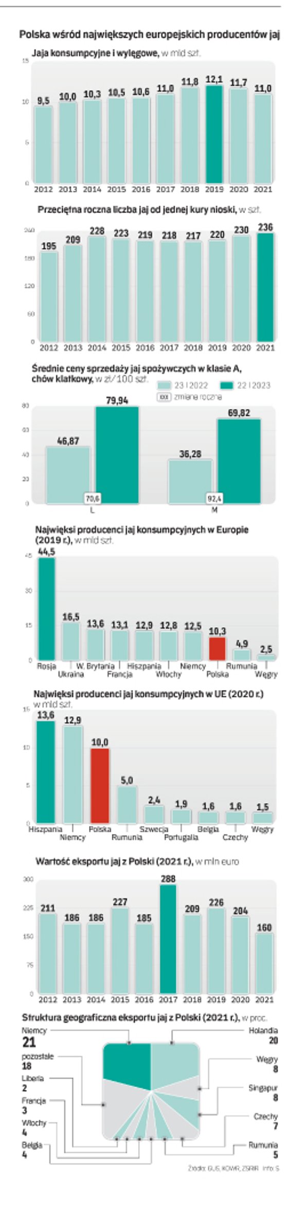 Mówi się o kilkudziesięcioprocentowych wzrostach cen w ciągu ostatnich kilku miesięcy. Potwierdzają to dane zebrane przez pracowników Ministerstwa Rolnictwa i publikowane w biuletynach Zintegrowanego Systemu Rolniczej Informacji Rynkowej. Wynika z nich, że 22 stycznia 2023 r. na rynku za 100 jaj spożywczych z chowu klatkowego w kategorii L trzeba było na rynku zapłacić średnio prawie 80 zł. Dokładnie rok wcześniej – niespełna 47 zł.