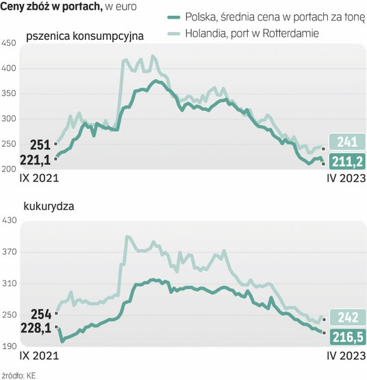 Dziś zapotrzebowanie na polską pszenicę jest, ale nie na ceny oczekiwane przez naszych rolników. – Klienci są zainteresowani, ale aktualnie jesteśmy za drodzy – mówi Przemysław Błażejewski. Klienci, o których konkuruje, sprawdzają, czy bardziej opłaca się kupić z USA, Ameryki Płd, czy towar rumuński. Poziomy cen wyznaczają giełdy, w Paryżu i Chicago, nawet jeśli cena konkretnego kontraktu nie jest wiążąca, to jest ważnym odnośnikiem. Błażejewski wylicza, że w ciągu ostatnich czterech tygodni Polska miała najwyższe ceny pszenicy i kukurydzy w Europie w odniesieniu do giełdy Matif. – Polski rolnik korzysta z najwyższych cen w Europie, a dostaje jeszcze dopłaty za transport, za produkcję, za nawozy. Tymczasem dalej słyszymy, że ceny nie są satyfakcjonujące, i to jest zastanawiające. Skala pomocy finansowej jest wywołana wyłącznie awanturą polityczną na polskim rynku – mówi broker.