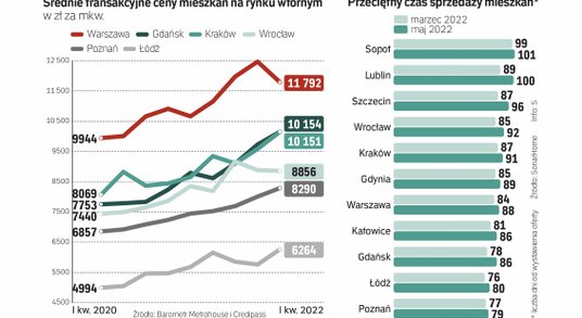 Tymczasem mieszkania wciąż drożeją. Metrohouse podaje, że średnie transakcyjne ceny mkw. lokali na rynku wtórnym w Warszawie wzrosły z ponad 9,9 tys. zł za mkw. w I kwartale 2020 r. do niemal 11,8 w I kwartale tego roku. W Krakowie – z niespełna 8,1 do ponad 10,1 tys. zł.