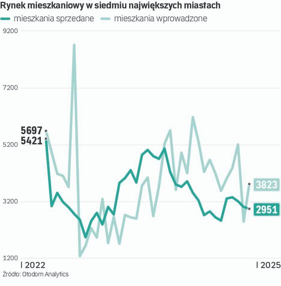 Z danych Otodom Analytics wynika, że po grudniowym wyjątku wróciła tendencja, że firmy wprowadziły na rynek więcej lokali niż w tym czasie sprzedały – w styczniu było to 3,8 tys. mieszkań.