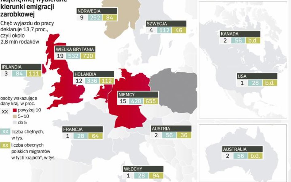 Młodzi, niezbyt dobrze wykształceni ludzie ze wsi i niewielkich miast, którzy wprawdzie mają pracę, ale zwykle jest to zajęcie słabo płatne – taki portret potencjalnego polskiego emigranta kreśli najnowsze badanie agencji zatrudnienia Work Service. Spółka już po raz szósty zbadała plany migracyjne Polaków, którzy – jak się okazało – są teraz zdecydowanie mniej chętni do wyjazdów zarobkowych za granicę niż jeszcze przed rokiem. Emigrację za pracą w najbliższych 12 miesiącach rozważa 13,7 proc. aktualnych i potencjalnych pracowników w Polsce, podczas gdy wiosną minionego roku plany wyjazdowe miało ponad 19 proc. badanych.