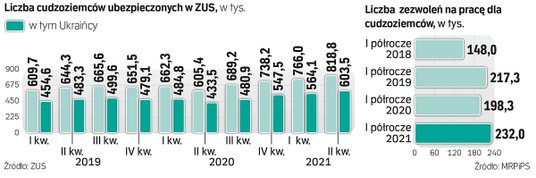 – Gdyby polski rynek pracy miał w tej chwili dostęp do dodatkowych 150–200 tys. pracowników z zagranicy, to z pewnością szybko by ich wchłonął – ocenia Michał Wierzchowski, dyrektor sprzedaży agencji zatrudnienia EWL Group, która specjalizuje się w rekrutacji pracowników ze Wschodu. Rekrutuje teraz dla swoich klientów niemal 2,5 tys. cudzoziemców miesięcznie. To o jedną czwartą więcej niż jesienią ub. roku i aż o połowę więcej niż w tym samym okresie 2019 r.