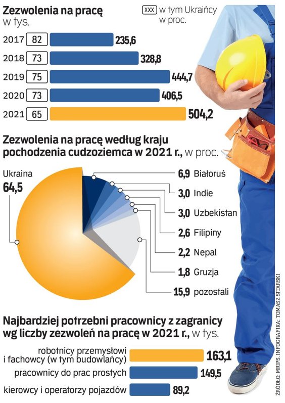 W polskiej branży przewozowej już co piąty kierowca jest obcokrajowcem, najczęściej Ukraińcem. W przemyśle motoryzacyjnym prawie 60 proc. firm posiłkuje się pracownikami z Ukrainy, a coraz częściej pracodawcy sięgają także po imigrantów zarobkowych z innych państw. Podobnie jest w budownictwie i logistyce.