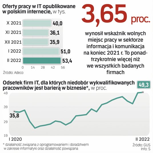 – Mamy ogrom pracy i cały czas jej przybywa. Widzimy teraz zwiększony wzrost zapotrzebowania na usługi IT, co niewątpliwie ma związek z wojną w Ukrainie – mówi Konrad Weiske, wiceprezes Organizacji Pracodawców Usług IT SoDA i prezes spółki Spyrosoft SA. Przypomina, że Ukraina, Rosja i Białoruś miały mniej więcej jedną trzecią outsourcingu usług IT w naszym regionie. Rosyjska agresja bardzo ograniczyła możliwości ich realizacji w Ukrainie, choć wiele ukraińskich firm przeniosło specjalistów w bardziej bezpieczne regiony kraju i nadal działa.