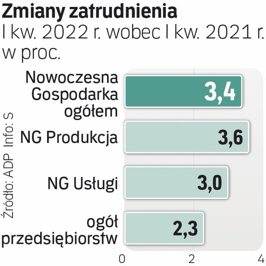 Korzyści z takiej strategii widać we wskaźnikach dotyczących zatrudnienia; podczas gdy w całym sektorze przedsiębiorstw badanym przez GUS liczba pracowników wzrosła w I kwartale br. o 2,3 proc. w porównaniu z początkiem 2021 r., to w firmach nowoczesnej gospodarki ten wzrost przekroczył 3,4 proc.