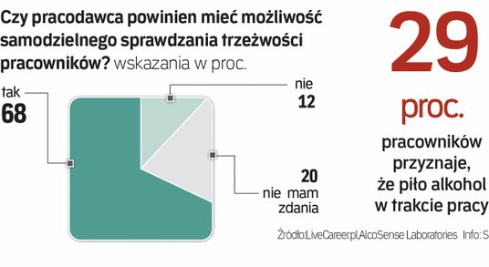 Według przeprowadzonego przed trzema laty badania SW Research dla AlcoSense Laboratories, 4 proc. pracowników regularnie zaczyna pracę na kacu, a 29 proc. miało kilka takich przypadków. Nic więc dziwnego, że pracodawcy od lat apelowali o umożliwienie im kontroli trzeźwości pracowników, a część firm wprowadzała je, nie czekając na przepisy.