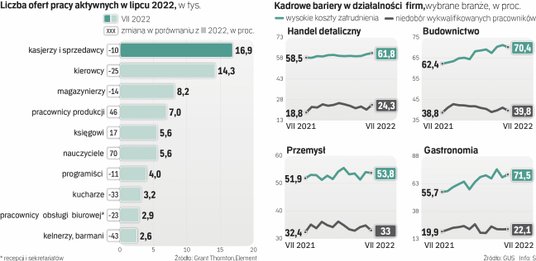 W lipcu tego roku wraz ze wzrostem pesymizmu wśród przedsiębiorstw, liczba ofert skurczyła się do 288 tys., między innymi za sprawą spadku w budownictwie, logistyce, a nawet w gastronomii, której powinno sprzyjać sezonowe ożywienie – wynika z raportu firm Grant Thornton i Element, który „Rzeczpospolita” opisuje jako pierwsza.