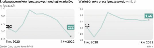 Wojciech Ratajczyk, członek zarządu PFHR, wyjaśnia, że o ile liczba projektów i zamówień z firm nie maleje, o tyle znacząco zmniejszyła się liczba pracowników tymczasowych. To bezpośredni skutek wybuchu wojny w Ukrainie, która wywołała odpływ tysięcy ukraińskich mężczyzn pracujących wcześniej w budownictwie, transporcie, logistyce i przemyśle. Ukraińskie kobiety uciekające przed wojną nie są w stanie wypełnić tych wakatów. Widać to także po coraz dłuższym okresie zatrudnienia pracowników tymczasowych, których firmy będące klientami agencji zatrudnienia starają się zatrzymać na dłużej.