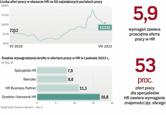 Prawie 105 tys. ofert pracy dla specjalistów i menedżerów HR opublikowano w ciągu ośmiu miesięcy tego roku na 50 największych portalach rekrutacyjnych w Polsce. To o 80 proc. więcej niż w tym samym okresie 2021 r., gdy z miesiąca na miesiąc coraz mocniej rozgrzewał się rynek pracy – wynika z analizy firm Grant Thornton i Element, którą „Rzeczpospolita” opisuje jako pierwsza.