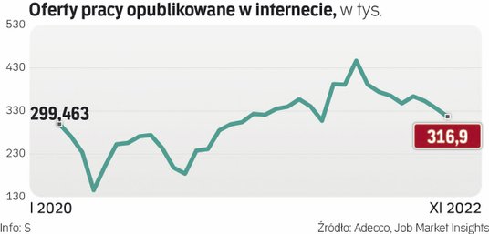 Dawid Pachucki, główny ekonomista PZU, zwraca uwagę, że liczba wakatów utrzymuje się na względnie wysokim poziomie, chociaż na koniec III kwartału 2022 r. (135,5 tys.) była prawie o 12 proc. mniejsza niż przed rokiem. Niepokoić mogą natomiast ogłaszane w grudniu wyniki badań firm, w których widać wyraźną przewagę planów zwolnień.