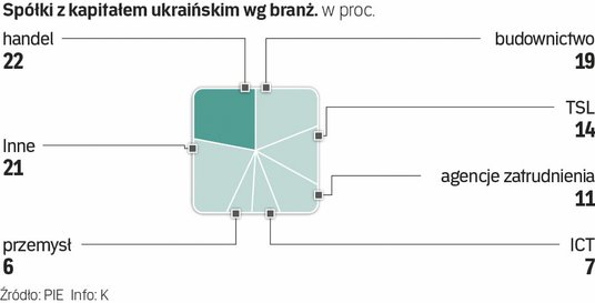 Według badania Polskiego Instytutu Ekonomicznego (PIE) połowa z nowych ukraińskich firm próbuje kontynuować działalność prowadzoną w Ukrainie. Do Polski przenoszą część lub całość biur spółki IT, firmy e-commerce, finansowe czy logistyczne, które rekrutują tu lokalnych pracowników, chętnie Ukraińców z tzw. starej emigracji. Wśród spółek, które w ostatnich miesiącach rozwinęły biznes w Polsce, są m.in. platforma e-commerce Rozetka (odpowiednik Allegro) i największa ukraińska firma logistyczno-kurierska Nova Post. Od września ub.r. otworzyła w Polsce 18 oddziałów w dużych miastach, a w styczniu uruchomiła w Warszawie pierwszy oddział cargo. Przed tygodniem o rozpoczęciu działalności nad Wisłą poinformował internetowy MonoBank, którego współwłaściciel nie kryje, że do tego kroku skłaniają go prawie 3 miliony Ukraińców przebywających obecnie w Polsce.