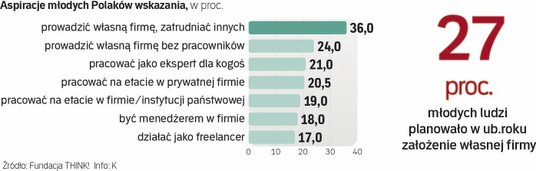 – Choć młodzi ludzie są aktywni zawodowo, mają pomysły, wiarę w siebie i duży poziom poczucia skuteczności, to niewiele osób w tej grupie zakłada własny biznes – zwraca uwagę Anna Bichta, prezeska Fundacji THINK!, komentując wyniki jej badania przeprowadzonego we współpracy z Centrum Psychologii Ekonomicznej i Badań Decyzji Akademii Leona Koźmińskiego (ALK) oraz Fundacją Citi Handlowy im. L. Kronenberga.