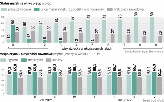 Autorzy raportu jako bariery w powrocie matek do aktywności zawodowej wymieniają: nieprzedłużenie umowy przez pracodawcę po jej wygaśnięciu w trakcie urlopu rodzicielskiego lub dawanie do zrozumienia, że matka nie będzie mile widziana po urlopie; stereotypowe myślenie tak pracodawców, jak i pracowników o nieefektywności matek jako pracowniczek. Kolejnymi barierami są: niewystarczająco rozwinięty system publicznych usług opieki nad dzieckiem. To nie tylko niedostateczna liczba dostępnych finansowo żłobków i przedszkoli, ale także problemy z transportem publicznym szczególnie w małych miejscowościach i na wsiach. Dodatkowo wiele kobiet zwraca uwagę na to, iż placówki są dostępne w takich godzinach, w których one pracują. Przeszkodami w powrocie do pracy są tak samo sztywne godziny otwarcia placówek co trudności w pozyskaniu pracy z elastycznymi godzinami.