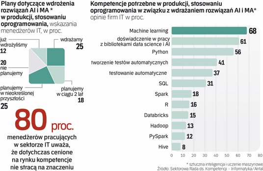 Kolejne miejsca na liście kompetencji kluczowych w świecie AI/ML zajęły: język programowania Python (który w ostatnich latach, w wyniku rozwoju AI, awansował do światowej czołówki najbardziej poszukiwanych języków programowania) doświadczenie w pracy z bibliotekami data science i oraz w pracy ze sztuczną inteligencją i umiejętność tworzenia testów automatycznych. Dla sporej grupy z ponad 600 tys. pracujących w Polsce specjalistów ICT nowe wymagania będą oznaczać spore zmiany. I to szybciej, niż można było do niedawna oczekiwać.