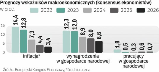 Ekonomiści prognozują, że tak jak pod koniec tego roku wzrost inflacji będzie jednocyfrowy, tak w kolejnych latach będzie się ona obniżała wolniej. – Zatrzymamy się na poziomie 4-5 proc. przez dłuższy czas – przewiduje Piotr Bielski, główny ekonomista Santander Bank Polska. Jego zdaniem za spowolnienie wzrostu cen odpowiadać będą spadki dynamiki cen żywności i paliw, a za przyspieszenie: zmniejszająca się liczba pracowników i presja na wzrost płac.