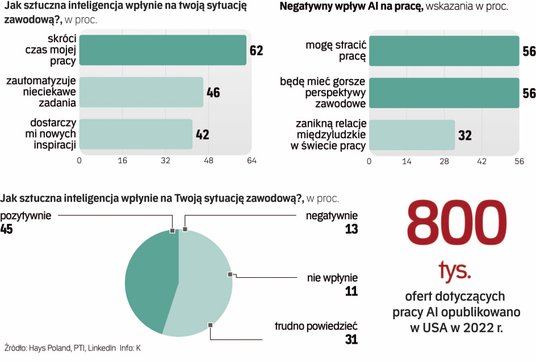 Inżynierowie promptów to może najgorętsza, ale nie jedyna specjalizacja związana ze sztuczną inteligencją, która wkracza do coraz większej liczby zawodów. Według raportu Stanford Institute for Human-Centered Artificial Intelligence w 2022 r. tylko w w USA opublikowano prawie 800 tys. ofert pracy związanych z AI. W Polsce takich statystyk nie ma, lecz łowcy głów zwracają uwagę na rosnący, szczególnie w branży IT, popyt na specjalizacje związane ze sztuczną inteligencją.