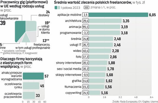 Tych niezależnych profesjonalistów, którzy świadczą swoje usługi zdalnie i często jednocześnie dla kilku firm, działa w Polsce kilkaset tysięcy. Rozbieżności w ocenie tej liczby są spore, bo wśród freelancerów są zarówno specjaliści, dla których praca projektowa jest głównym źródłem utrzymania, jak i ci, którzy zleceniami dorabiają sobie do stałego wynagrodzenia. Grupa tych drugich może teraz szybciej rosnąć, bo wysoka inflacja i gorsza koniunktura na rynku pracy (która utrudnia negocjacje podwyżek płac) skłaniają więcej osób do szukania dodatkowych zleceń.